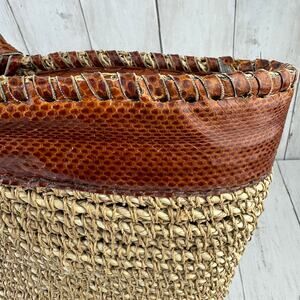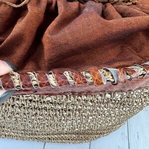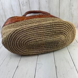 VTG Beirn Brown Cotton Raffia and Leather Trim Shoulder Tote Bag Hand Made