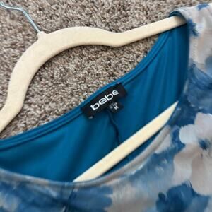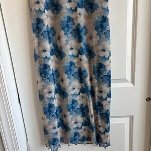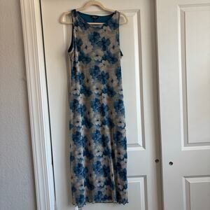 VTG Bebe Blue Floral Mesh Maxi Dress Slim Fit 90s Grunge Fairycore Bodycon Sz M