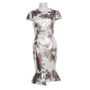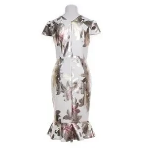 Alexa B Nites Floral Cocktail Dress with Metallic Color Flowers