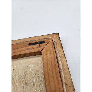 Smaller painting. Age and wear noted. This canvas painting has not been removed from the frame. There is discolorating, foxing to canvas. Writing on back of frame. No glass or anything to protect canvas. Painting does have some cracking in areas, faint wear. Still a beautiful piece depicting wash/laundry day in the fountain.