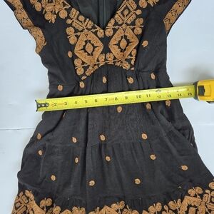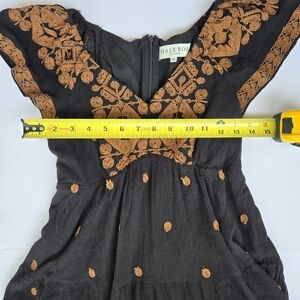 Hale Bob Black Mini Dress with Brown Embroidery -Size XS -100% Rayon