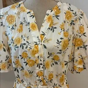 Joie Ruffled Dress Puff Sleeve Cotton Yellow Floral Belted with Pockets 12