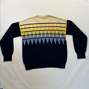 HEAD Geometric Wool Blend Sweater Retro Knit Pullover Navy Yellow Blue Large