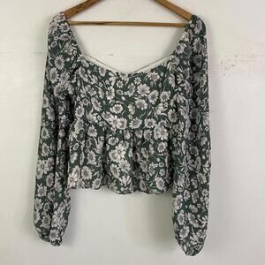 LULUS green and white floral long sleeve peplum blouse