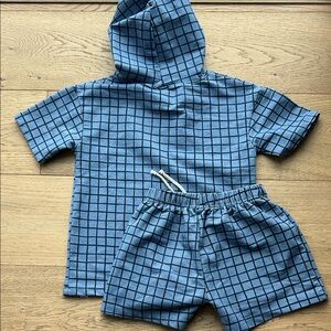 Stylish blue checkered hoodie and shorts set. Handmade in the USA. New with tags