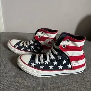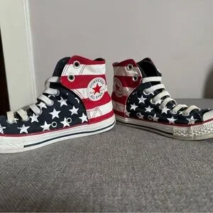 Stylish Converse high-tops for kids. Features star and stripe design. Perfect for everyday adventures.