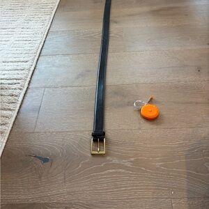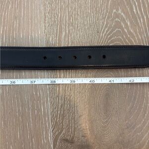Elegant dark brown leather belt. Features a polished gold buckle. Perfect for formal or casual wear.