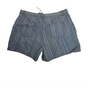 Vtg 1990s Y2K Faded Glory striped lace up front denim jean shorts. Two small spots shown in photos. Very Britney and Christina Y2K style! Please refer to measurements for fit. Marked size 18. Cotton.