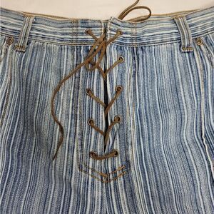 VINTAGE 90s Y2K lace up front striped denim jean shorts XXL