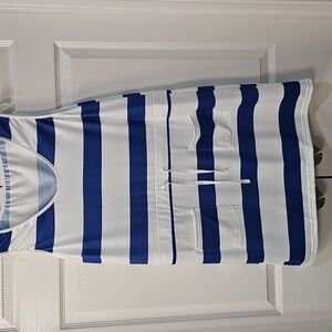 NWT Hesxuno Blue and White Striped Sleeveless A Line SWIM Midi Dress/Coverup XL