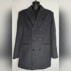 HXW.GJQ Men's Double-Breasted Gray Wool Pea Dress Coat Size Large BV-3141