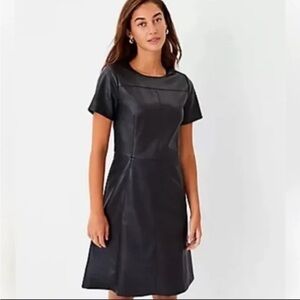 Chic black midi dress by Ann Taylor. Features a sleek faux leather design. Ideal for versatile styling.