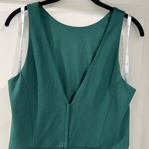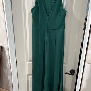 Chic maxi dress in hunter green. Sleeveless design with elegant draping. Stretchy and forgiving, beautiful neckline and cut on back. Worn a couple times and always dry cleaned after. No obvious signs of wear. David’s Bridal green evening gown, formal dress, size 14