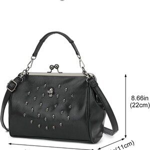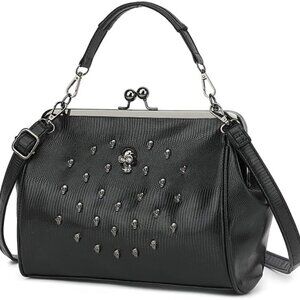 Features: This stylish vintage faux leather clutch features a bold skull design with a sleek, gothic vibe. It’s compact yet well-organized with a main compartment, back zipper pocket, and two slots for easy access to your essentials. The kiss lock closure adds a retro touch, and the adjustable shoulder strap makes it versatile for shoulder or crossbody wear.