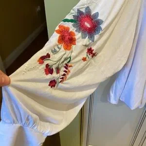 Sklyer blouse cut out peasant top embroidered floral size medium floral on sleeves H20