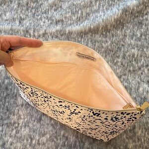 Stylish leopard print cosmetic pouch. Features a zip closure. Perfect for travel or daily use. One small stain but clean and like new! Only used a few times for travel.