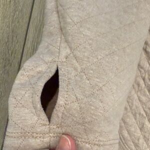 Stylish quilted sweater with a cowl neck. Beige color for a versatile look. Pocket - Thumb slits/loops