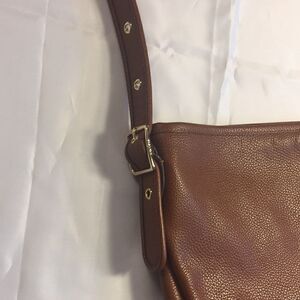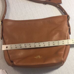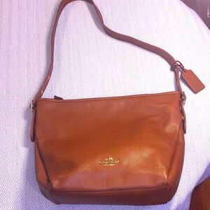 Coach bag, Coach shoulder bag, pebbled leather, cognac color bag, brown bag, adjustable strap,