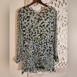 Zara Women’s Floral Print Ruched Details Long Sleeve Mini Dress M