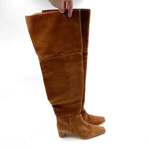 Reformation Reiss Over The Knee Boots Brown Suede Block Heel Pull On Sz 9.5
