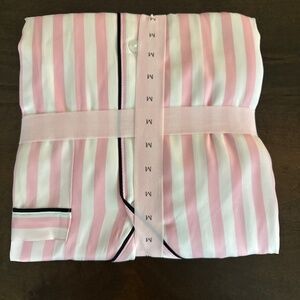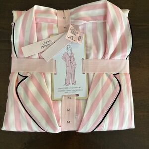 Victoria's Secret Glazed Satin Long Pajama Set Iconic Pink Stripe M SHIPS TODAY