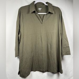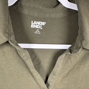 This Lands' End Collared Knit shirt is used and in EUC. It is green and size 1X. See pictures for approximate size measurements.