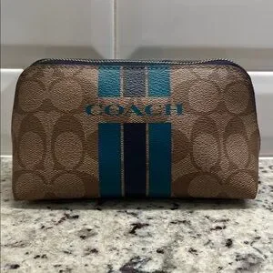 Coach Signature Stripe Cosmetic Case EUC
