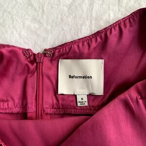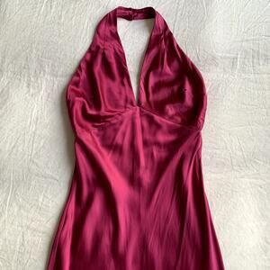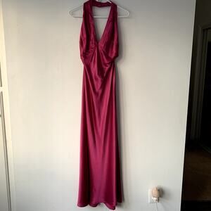 Reformation Daniela Silk Deep V Neck Halter Maxi Dress Gown Hibiscus Tea