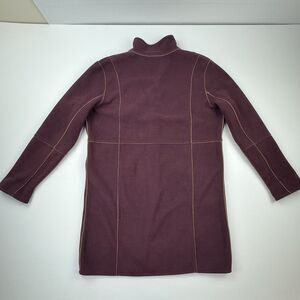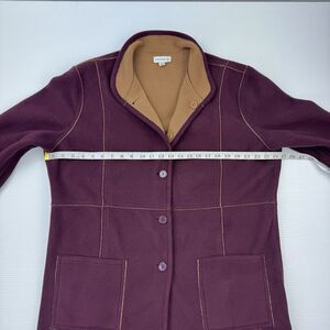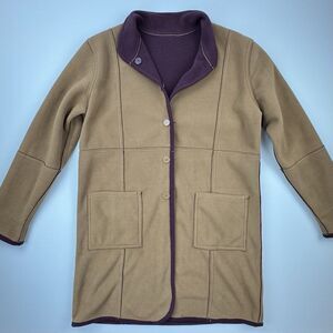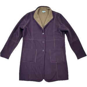 Susan Graver Reversible Fleece Coat Jacket Large Purple Tan Button Front Pockets