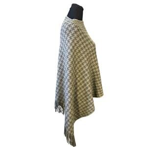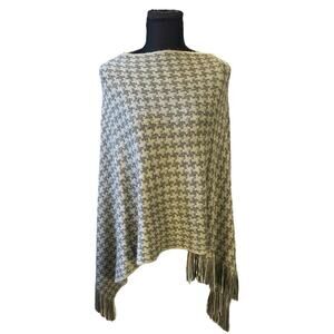 Gray Houndstooth Fringe Hem Poncho Cape One Size