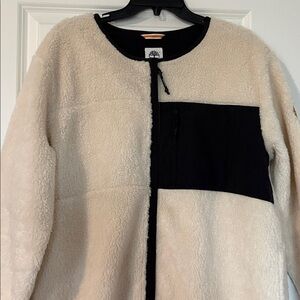 Gently worn (only twice) Timberland jacket. Size M. Jacket runs big. See picture for material. Has zipper pocket on the front and pockets on the sides. Jacket is mid-length (depending on height it hits mid-thigh). Comes from a smoke free, pet free home.