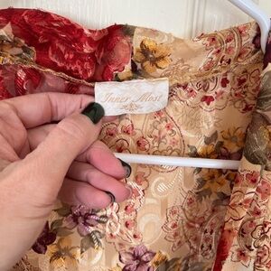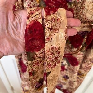 Luxurious women's robe with a stunning floral design. The red and gold hues bring elegance to your intimate wear. ***There is a small hole by the flowers shown in picture.*** No fabric tags.