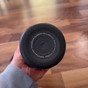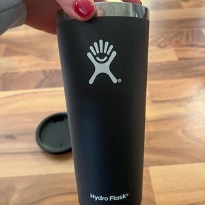 Matte black Hydro Flask tumbler. Includes a detachable lid. Ideal for maintaining drink temperature.