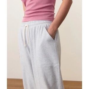 Ultra-cozy Marine Layer Cloud 9 Fleece Barrel Sweatpants in classic heather gray. This cult-favorite style features a modern barrel-leg silhouette, elastic waistband with adjustable drawstring, and tapered jogger cuffs for that perfectly relaxed yet elevated lounge look. Made from Marine Layer’s signature Cloud 9 Fleece—soft and plush on the inside with a smooth, polished exterior. Ideal for travel days, errands, lounging, or styled with a fitted tee and sneakers.