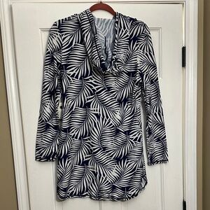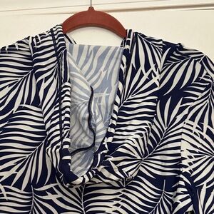 Navy and White Leaf Print Women's Swim Cover-Up