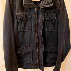 Hollister Vintage Men's XL Dark Blue Military Field Y2K Jacket 100% Cotton