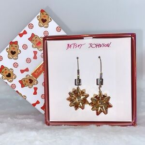 Betsey Johnson Gold Bow Earrings With Rainbow Colored Rhinestones NIB