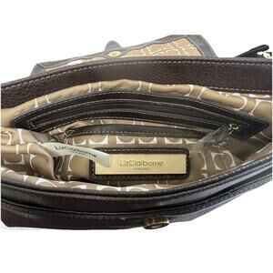 This Liz Claiborne crossbody bag is brand new without tags. It has never been used and is in excellent condition with clean lining, crisp structure, and no signs of wear. Features a rich brown faux leather exterior, stylish buckle flap design, and spacious interior with signature logo lining.