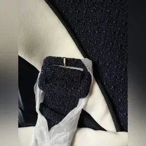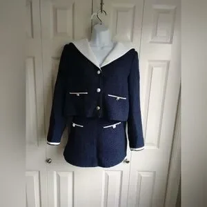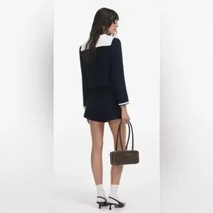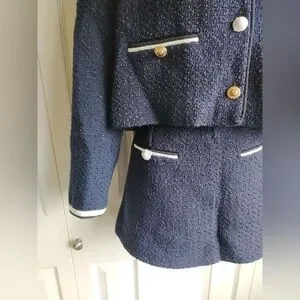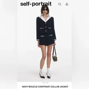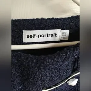 New Self-Portrait Navy and White Tweed Blazer Short Set