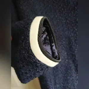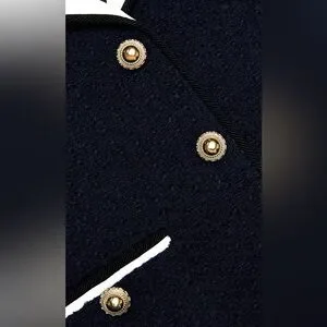 Channel nautical charm with this navy bouclé jacket, which boasts an oversized sailor collar and gold button detailing. Pair its cropped length with high-waisted jeans and pleated minis alike.