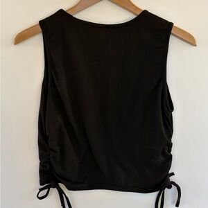 Black Ruched Crop Tank Top Graphic Handprint Print Size L