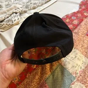 Stylish black cap featuring a bold red star logo. Perfect for casual wear.