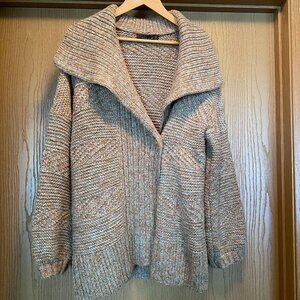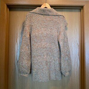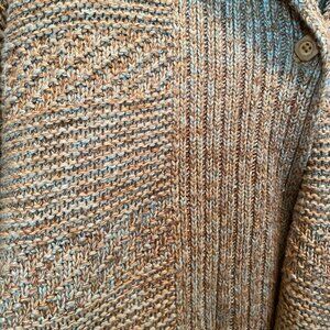 Women's Prana Sukie Chunky Knit Sweater Duster Cardigan Size tan/blue M Wool