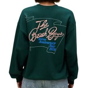 Rock timeless style with The Beach Boys Pine Green Silver Anniversary BF Crew. This cozy sweatshirt combines vintage charm and modern comfort, perfect for music lovers and fashion enthusiasts. Its rich pine green color and nostalgic design make it an effortless addition to your casual wardrobe, ideal for cool evenings or relaxed weekends. This pine green sweatshirt features a crew neckline, long sleeves, a surf graphic and a shout to The Beach Boys' Silver Anniversary Tour '89.