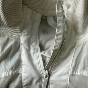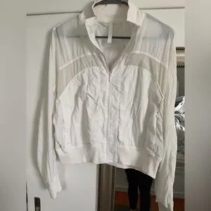 Chic white bomber jacket by lululemon athletica. Lightweight and stylish. Perfect for layering.