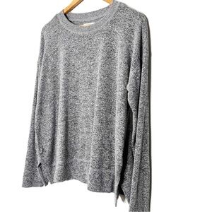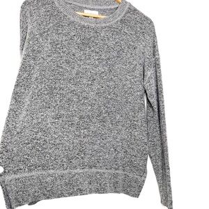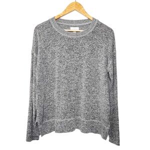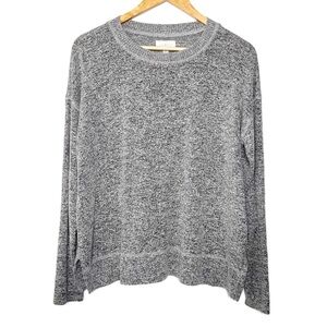 Lucky Brand Women’s Gray Black Marbled Crewneck Soft Fuzzy Long Sleeve Sweater