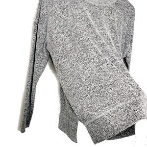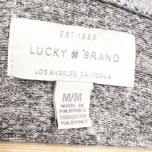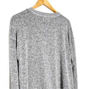 Lucky Brand Women’s Crewneck Sweater. Stay cozy and stylish with this elegant gray sweater. Perfect for everyday loungewear. Gray/ Black Marbled color. long sleeves with a crew neckline. Long length with side slits for added style. Super soft material. Flowy, oversized fit. Loungewear, cozy, comfortable. Good preloved condition with no flaws. Size M. Style: 7WC7008. 60% Viscose, 36% Polyester, 4% Elastane. Machine wash cold. Made in Philippines.