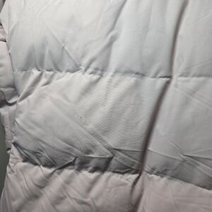 Long blush pink puffer coat with snap button and zip closure. Removable hood and Removable fur lining strip. 2 hand pockets and an inside pocket. Cute and warm! A few minor spots on front and back as shown in photos. Just now seen them, stain remover may do the trick. Other than those spots, minimal signs of wear. Size 2X. Pit to pit is 26", length 38".