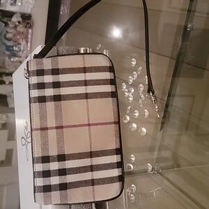 This Burberry wrisstlet/clutch has never been used. I actually unzipped it for the first time for these pictures. It is 100% authentic. I do not sell or endorse the selling of knock-off brands. This is large enough to carry your phone, lipgloss, money/cards, and keys. You can carry it as a small purse or as a wristlet. Either way, it looks awesome! If you have any questions please don't hesitate!