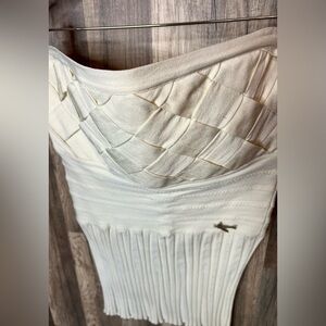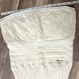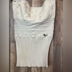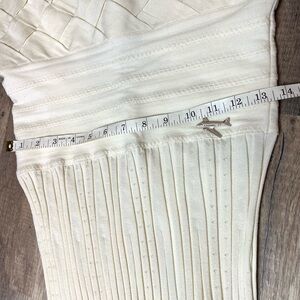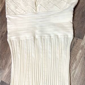 Cream Bodycon dress by CHANEL. Features weave pattern & sleek fit! The perfect dress to wear for New Year’s w/ faux fur, denim or sequins! Add sexy tights w/ heels or boots. See photos for measurements, thank you for shopping!